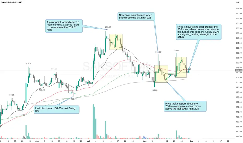 Price tried to break 253.51 but failed. After sideways movement, this level confirmed as a pivot high → resistance zone.