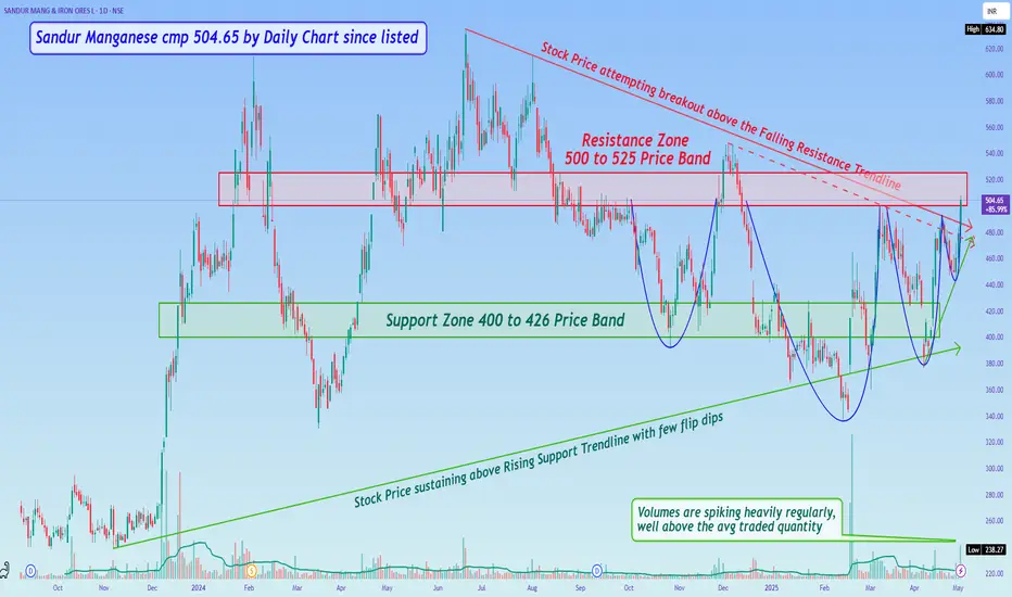 Sandur Manganese cmp 504.65 by Daily Chart since listed