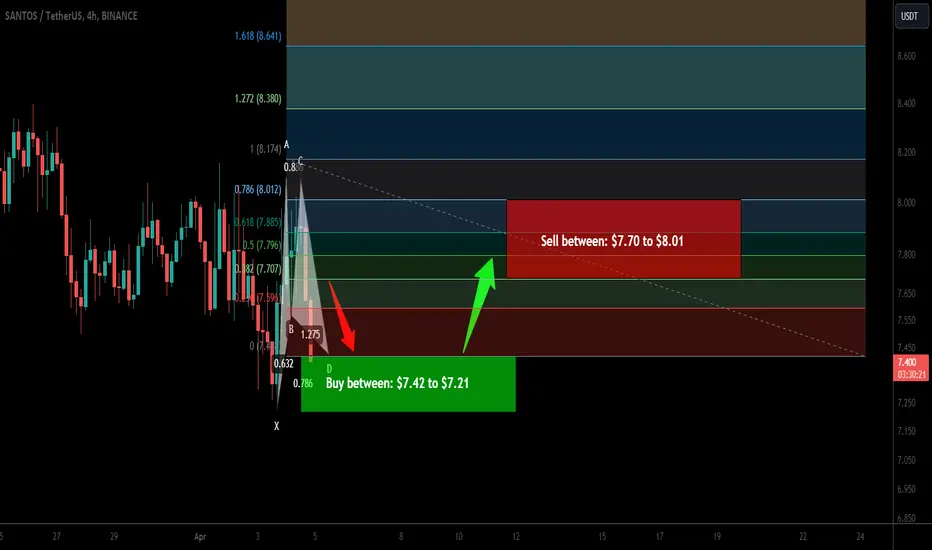 Now on a 4-hr time frame, SANTOS has formed a bullish Gartley move for the next price reversal.