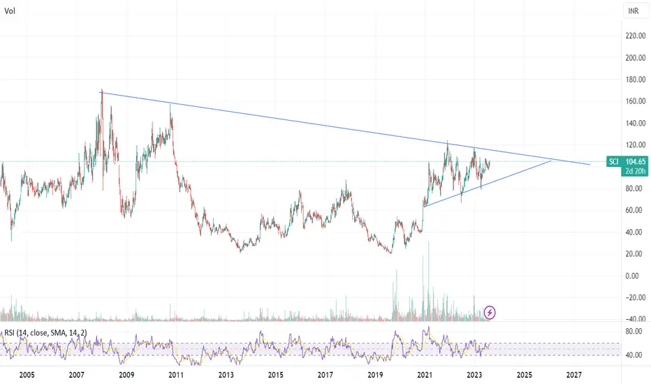 Shipping Corporation Of India(SCI) near to 15 years breakout. stock continuously takes resistance to trendline and now very close to breakout. closely watch these stock.