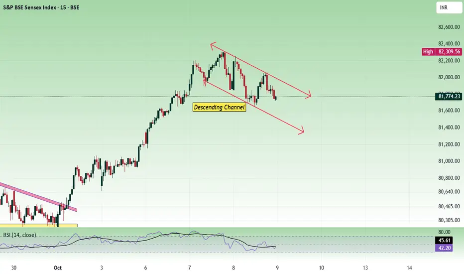 Price was facing resistance from the 82300 zone and falling. This movement was forming a descending channel as the fall was in a zig-zag manner. Nearby support is at the 81500 zone and resistance at the 82000.