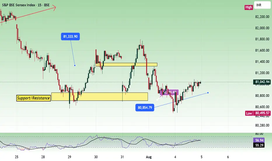 We had a choppy market today. Though price moved up, since it was choppy, option buyers did not get the benefit. Right now price is at support zone 81000. If this level is sustained we can expect 300 to 400 points move before price face another resistance.