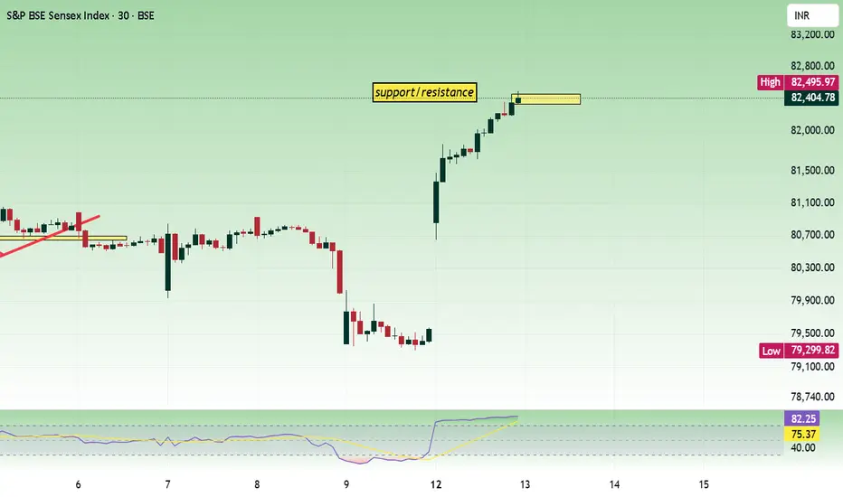 Price opened gap up and moved up slowly, but with stability. 82500 should sustain to move up further.