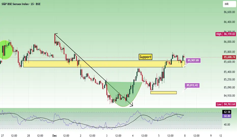 Double top resistance is seen at the 86150 zone. Profit booking can happen at that level.