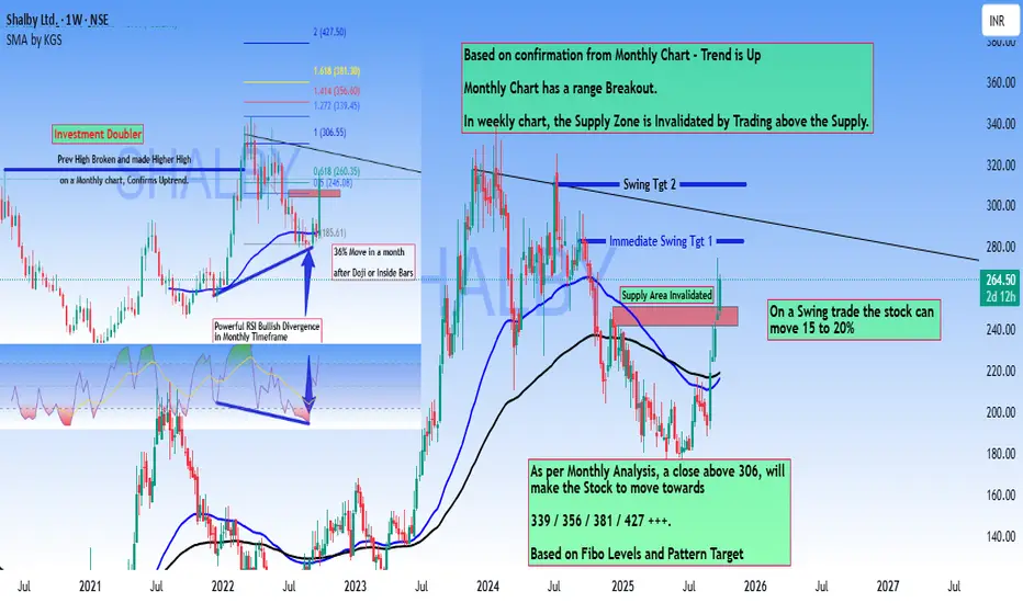 Shalby Ltd presents a strong technical setup with multiple timeframe confirmation. The invalidation of the supply zone and monthly breakout suggest the stock is positioned for a sustained upward movement. Traders should monitor the ₹306 level closely for breakout confirmation.