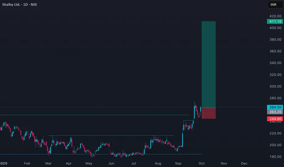 Shalby Limited (SHALBY) is currently in a strong uptrend, closing today at ₹264.85 with a gain of about 6.64%. The stock has traded between ₹250.05 and ₹266.60, showing high momentum and robust volume, indicating strong buying interest.