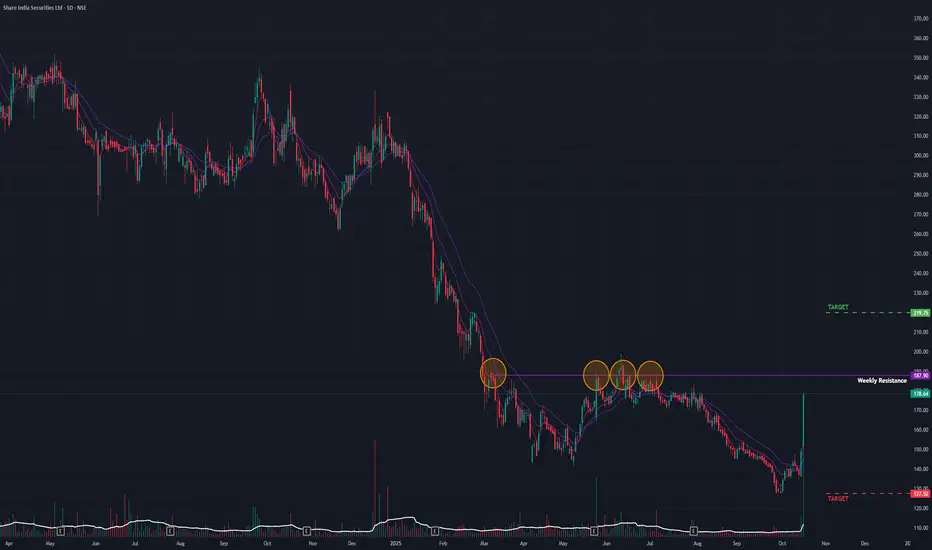In conclusion, Share India is at a "prove it" moment. While the recent surge is incredibly powerful, it must now overcome a historically significant resistance level to prove that this is the start of a sustainable new uptrend and not just a sharp bear-market rally.