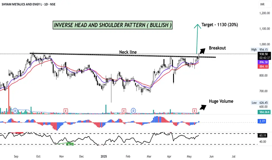 Shyam Metalics & Energy Ltd has formed a complex Inverse Head & Shoulder Pattern on the Daily charts and has given a breakout with good volumes.