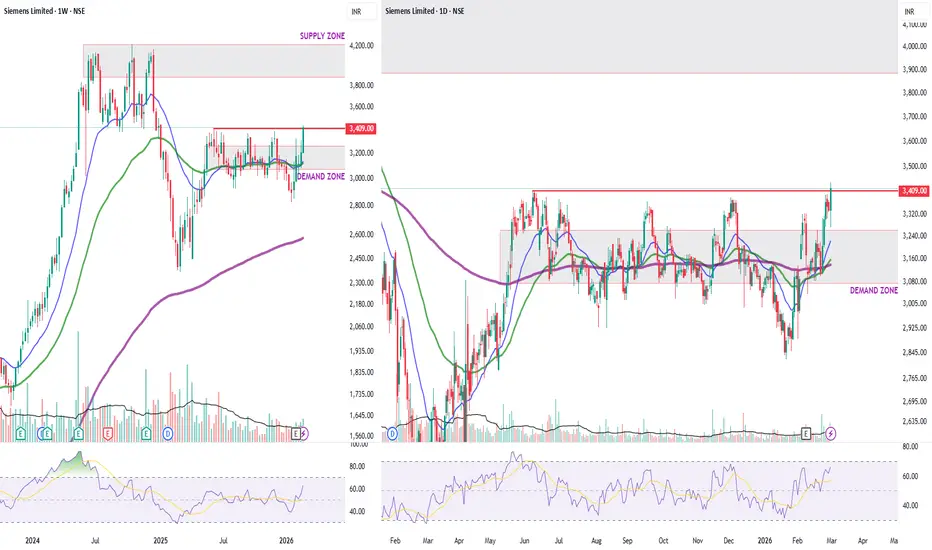Siemens in strong bullish momentum, recently hitting new 52-week highs. The stock has benefitted from a robust Q1 FY26 performance and an upgraded full-year outlook driven by high demand in smart infrastructure and AI-related data center projects.