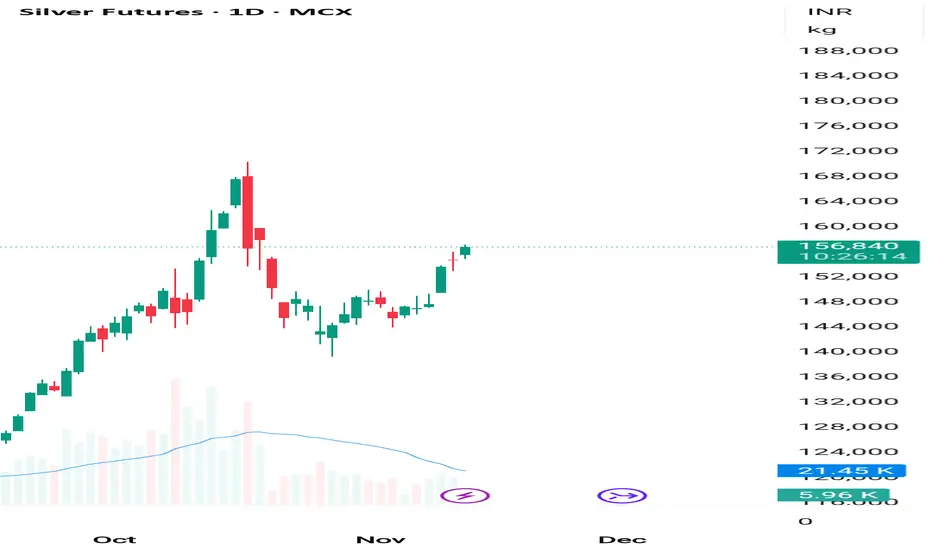 - Price Action: Silver is holding firm above ₹156,500, showing strong bullish momentum.