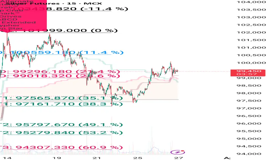 If price going upside/ downside then then buy or sell levels appear on Chart ( Automatically show when price reach any reversal zone of harmonic projection pattern based .