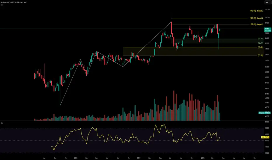Stock Overview: NIPPONAMC - NETFSILVER, listed on the Indian exchange, is currently priced at ₹93.80. This stock represents the Nippon India Silver ETF, which tracks the performance of silver, offering investors a commodity-linked investment avenue.