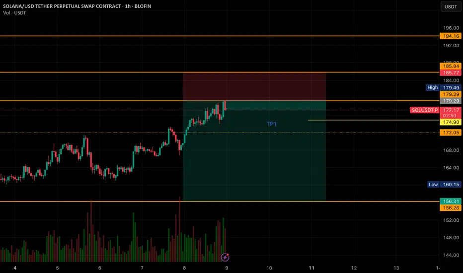 Price has tapped into a significant resistance zone around $179–$185, where it faced immediate rejection. This zone aligns with multiple supply levels and previous price reaction areas. The current rejection hints at a possible short-term reversal or retracement.
