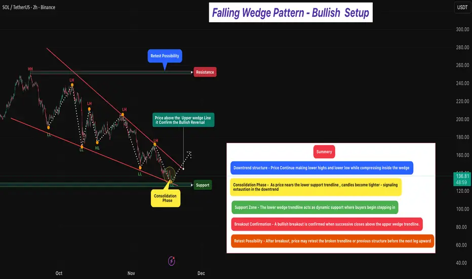 • Pattern Type → Falling Wedge (Bullish Reversal)