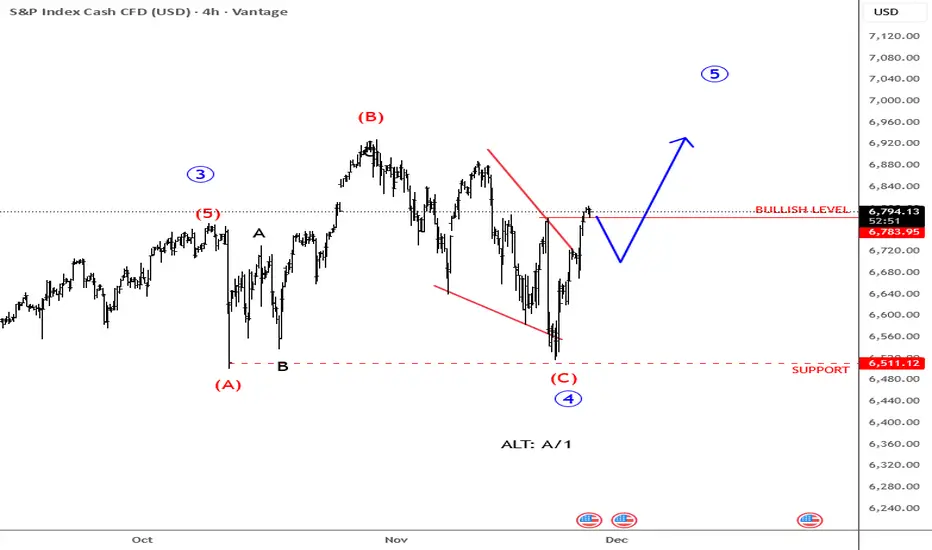 US stock market moved lower recently, and we’ve seen one of the biggest declines in the last few months, with lower highs and lower swing lows for the last couple of weeks, but there is still a chance that this is basically a diagonal formation on SP500, either in wave C or alternatively already in wave A or wave 1. But so far looks more like a completed C wave of a flat due to the current strong rebound, which can be the beginning of a new wave 5 headed towards new highs; What’s important in the near future, in our opinion, is that as long as the market trades above 6512 support, there is a real chance that there will be more upside in the near-term. At least three wave rally is what I would be looking for.