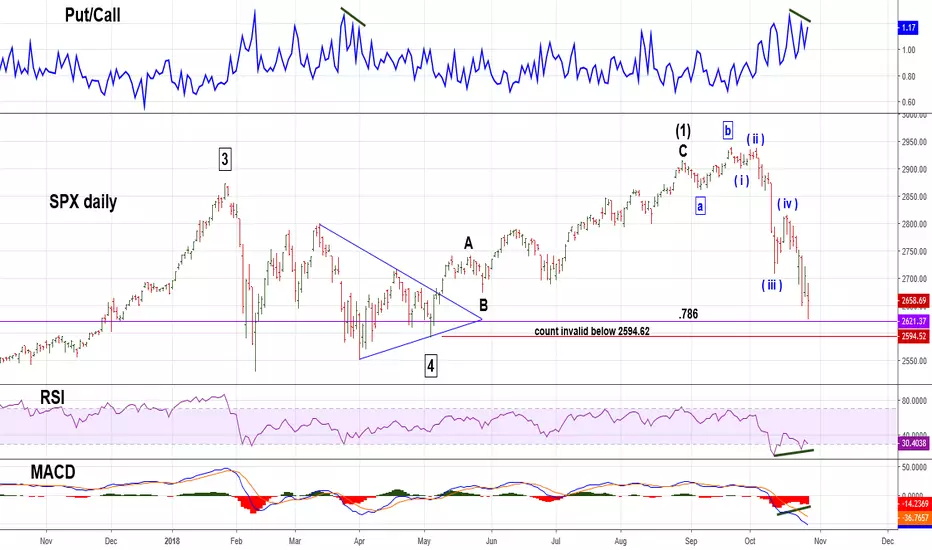 If the SPX breaks below 2594.62 it will invalidate the wave count illustrated and open the door to more downside.