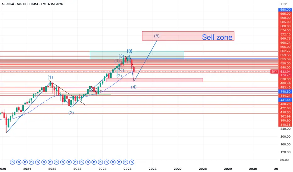 If SPY sustains above 480 on monthly close, we can consider it as end of wave 4 and the beginning of wave 5. 640 will act as a resistance and once 640 is broken, SPY target would be 695-740 zone where SPY will complete its wave structure. The move from 640 to 700 is most likely retail fomo. Good zone for booking short term profits and for the stocks bought at end of wave 4