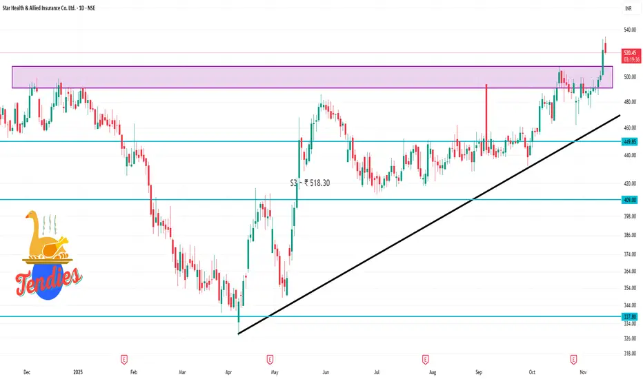 S1 ~ ₹ 504.68, Pivot ~ ₹ 518.27, R1 ~ ₹ 536.03.