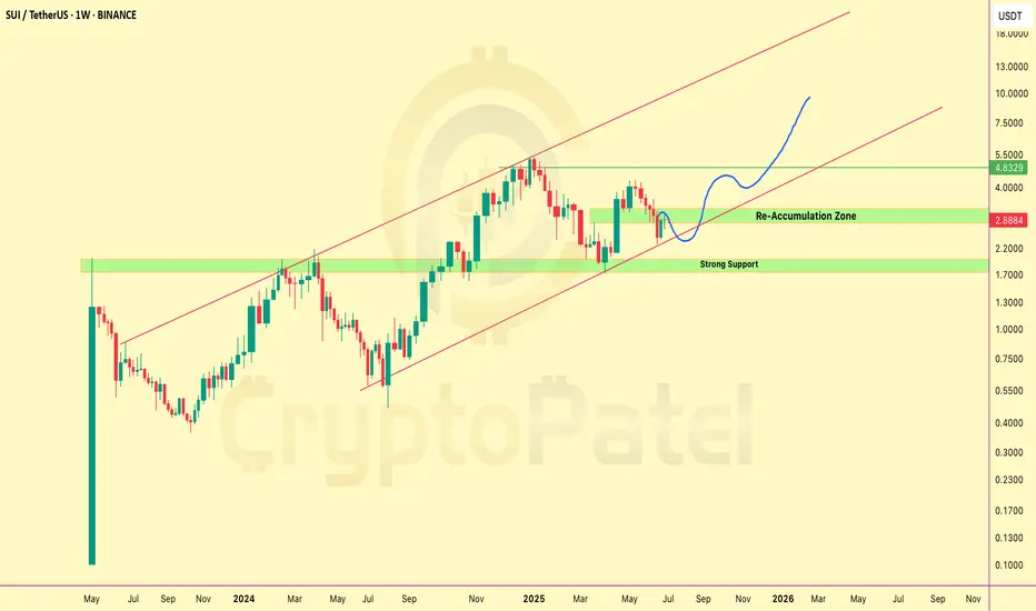 SUI is trading around $2.89, currently sitting in a key re-accumulation zone after a correction.