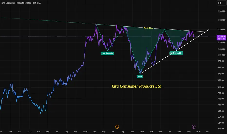 Technical analysis often provides traders with powerful insights into potential market moves. One of the most reliable reversal patterns is the Inverted Head & Shoulders, which signals a shift from bearish to bullish sentiment. Let’s break down this pattern, its importance, and how it applies to Tata Consumer Products Ltd, currently trading near ₹1152 levels.