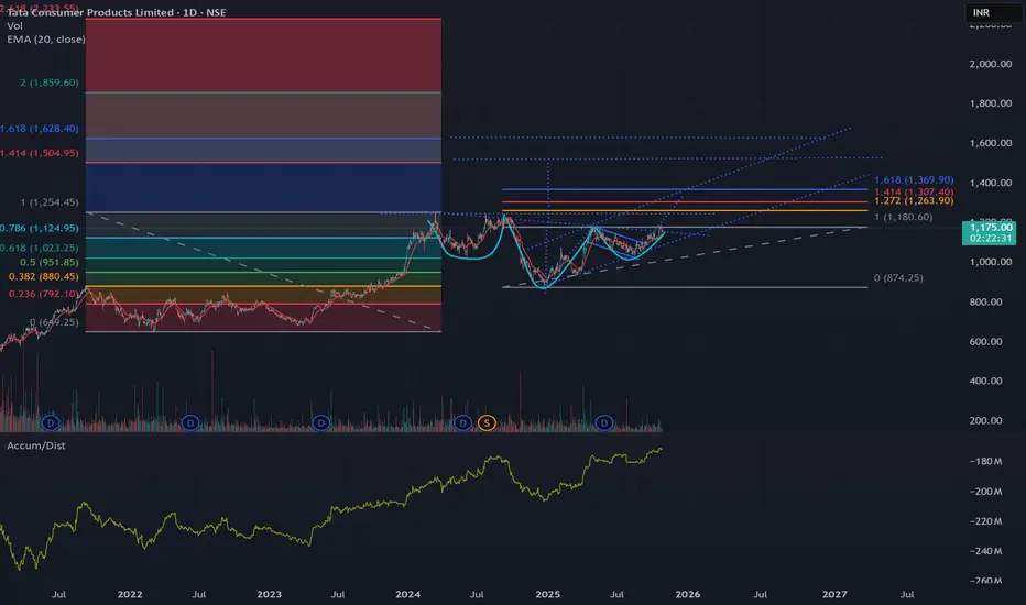 Based on multiple chart patterns ABCD harmonics, Fibonacci, IH&S the stock can easily touch 1350 quickly and 1500 in near term.