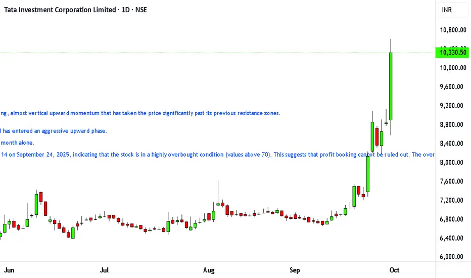 Technical Indicators: The 14-day Relative Strength Index (RSI) was recorded at 87.14 on September 24, 2025, indicating that the stock is in a highly overbought condition (values above 70). This suggests that profit booking cannot be ruled out. The overall market sentiment, however, remains "very bullish" as of September 30, 2025.