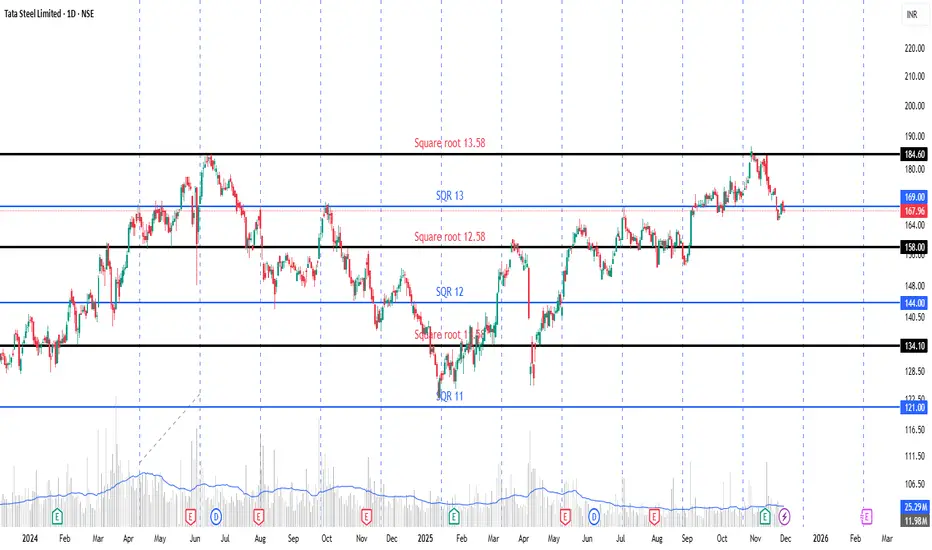 Square root (13-2) =11 - 11² = 122 price level work as a strong support on Dec,2024.