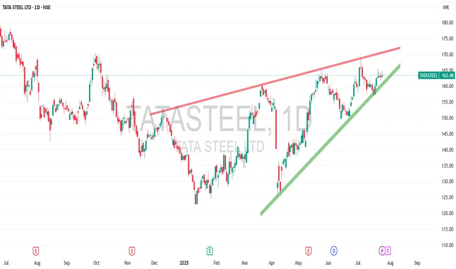 In June 2024, Tata Steel hit an all-time high of ₹185 but later corrected, bottoming near ₹120 in January 2025.