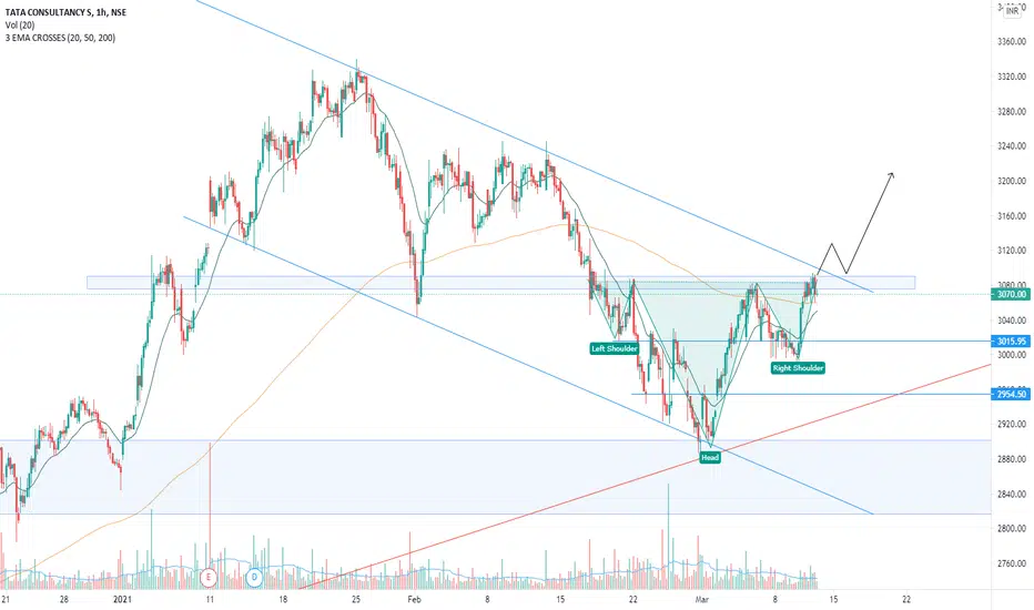 TCS is on verge of breaking out from the descending parallel channel and forming a kind of inverted head & shoulders pattern at a key zone.