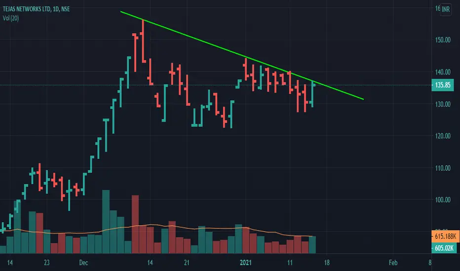 Stock is in strong uptrend and consolidating since 22 days on low volume. It cab be bought at 137.50 with SL of 129.20