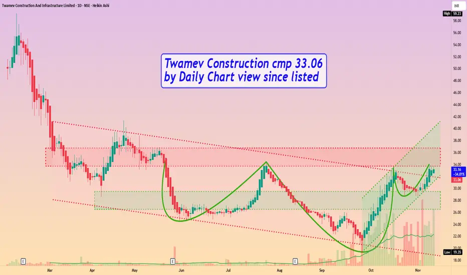 Twamev Construction cmp 33.06 by Daily Chart view since listed