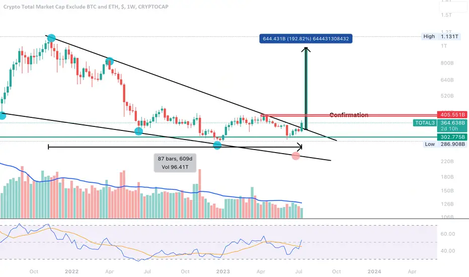 The final confirmation is if TOTAL3 gets above resistance at 407 billion USD.
