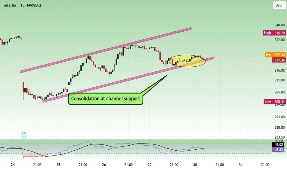 If channel support is not holding and price gains bearish strength, can sell below 318.