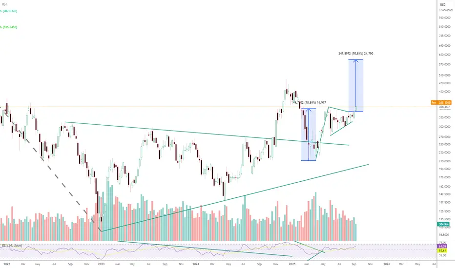 Tesla breaking out of a Flag & Pennant Pattern that may take it to new all time highs