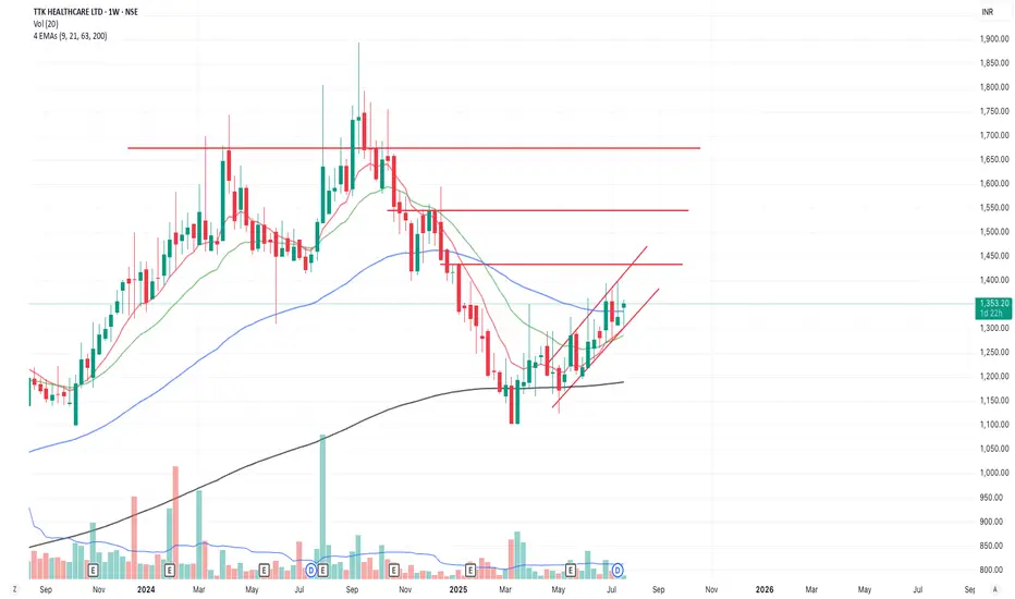 EMA 200 is well below the above EMAs, supporting the setup and is at 1190.