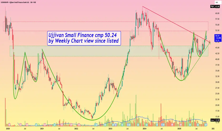 Ujjivan Small Finance cmp 50.24 by Weekly Chart view since liste