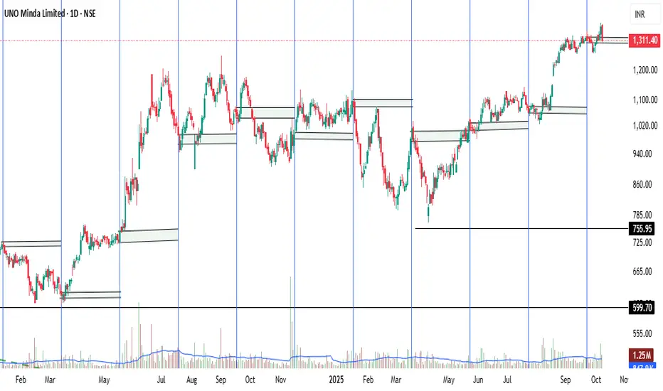 It's a matter of great luck in the time cycle, if you find trades on only one side in every cycle. This is a chart of Unominda, as you can see, most of the trades are on one sided. This is rarely seen in charts.