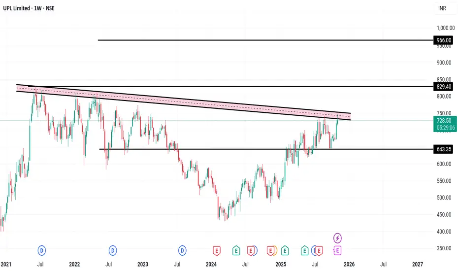 UPL’s current market price is around ₹724.15 with a P/E ratio of 11.65. The company holds a market capitalization of ₹61,068.53 crore and offers a dividend yield of 0.83%.