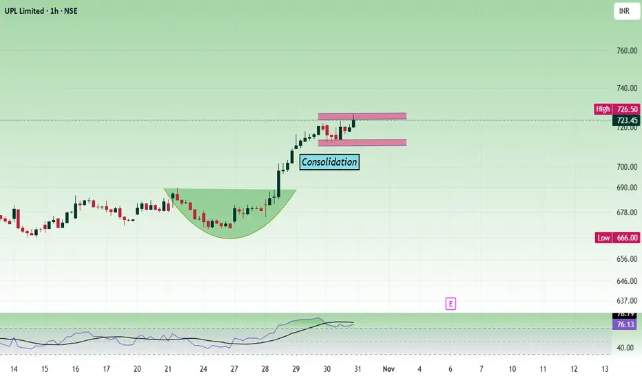 The price is consolidating between the range of 710 to 720. Buying levels are 710, 720, depending on your trading style. As per the daily chart, the price is giving a trend line breakout.