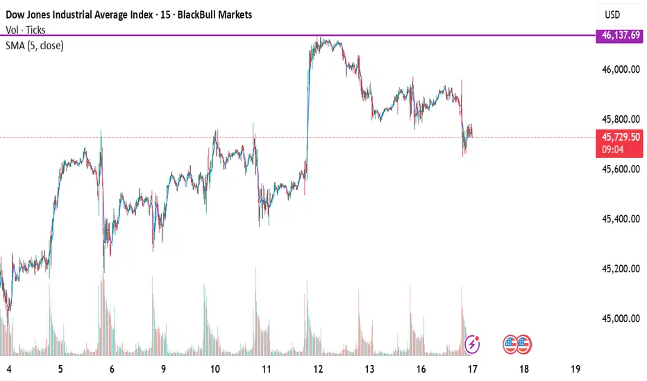 Price is currently consolidating after a recent pullback and holding above the 45,700 zone, which is acting as short-term support. If the price sustains above this level, I expect bullish momentum to continue and price to retest the recent swing high near 46,137.
