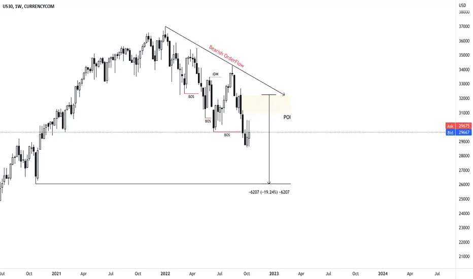 US30 has been bearish for quite some time now and with inflation playing a part we will be bearish for a little while longer !