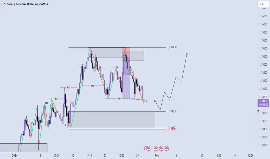 possible USDCAD trade scenario enter with ltf confirmation if taken direct entry manage your risk properly 1:2-3 RR as this week is full of HIGH IMPACT NEWS enter at your own risk
