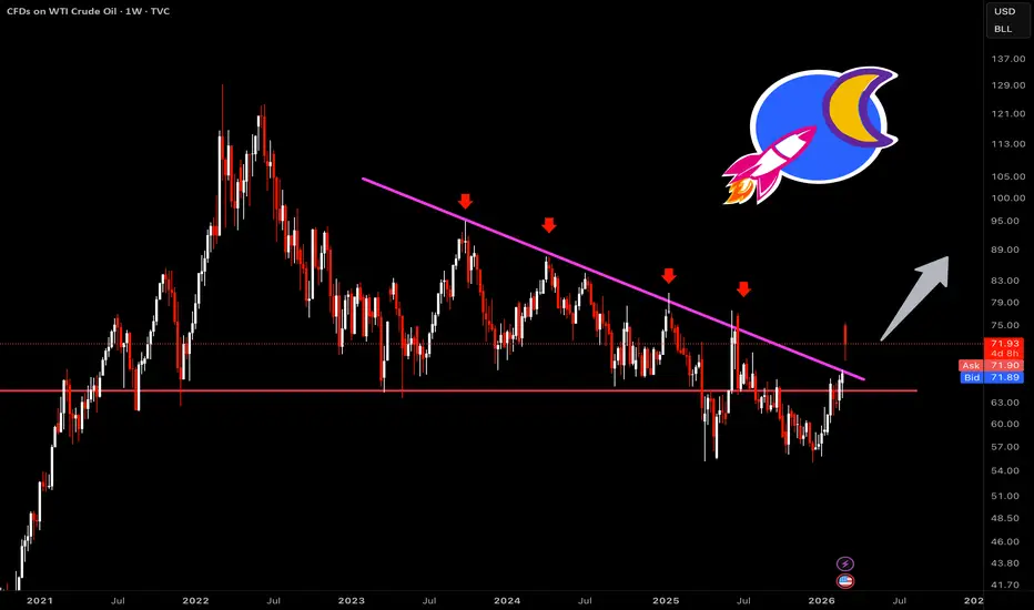 If WTI closes above this descending trendline on the weekly we are looking at 83-85 as the first real target