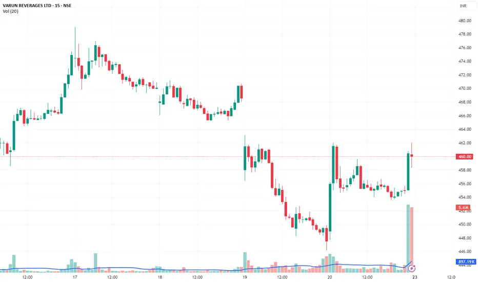 ✅ Reversal from Strong Support: VBL rebounded sharply from the ₹448–450 demand zone — a historically strong base for buyers.