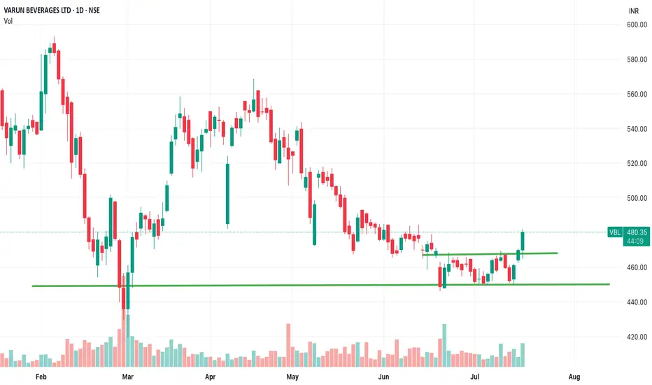 On daily chart, there is clear breakout in VBL. One can buy at CMP with stop loss below 450. FMCG stocks are doing good and there is green shoots appearing as per latest business update.