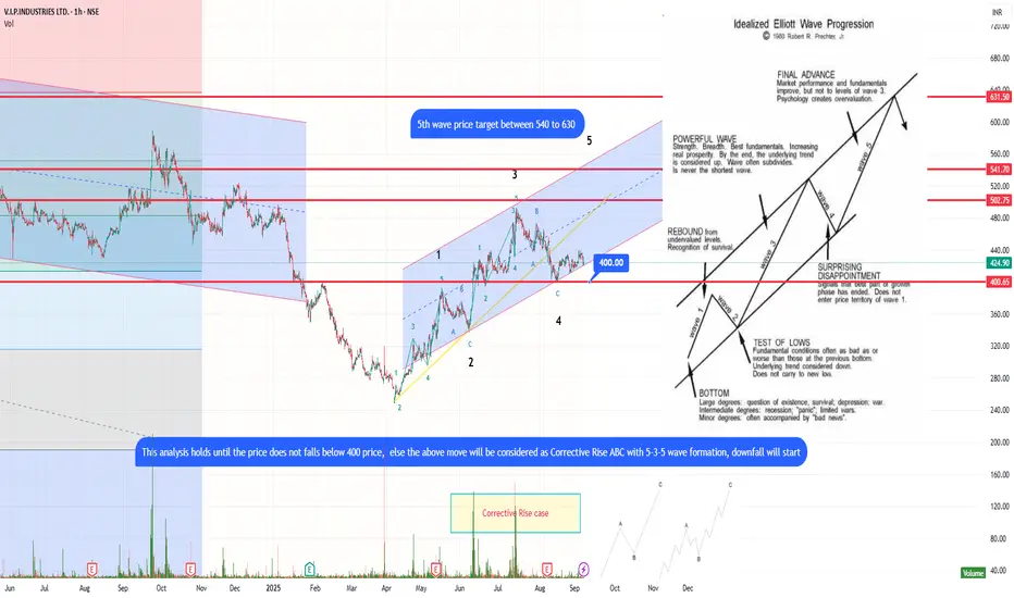 This analysis holds valid till price does not fall below price 400, else the move will be considered as corrective rise ABC with 5-3-5 wave formation, further correction will come prices will fall.