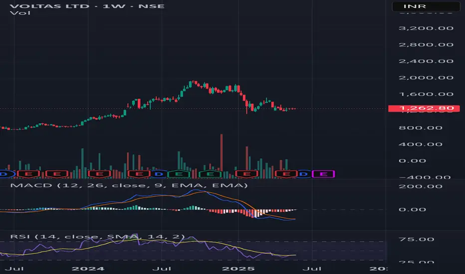 As per weekly chart set, Positive divergence in MACD and RSI is being noticed, the stock was in uptrend from last one year, now stock is trading at 1262 levels from all time high which was 1915, reversal can be seen in next 6 months, one can look for the stock.