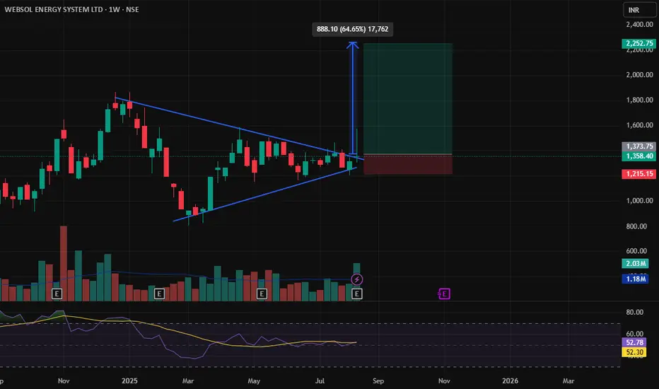 Websol Energy System Ltd, on weekly timeframe this stock is giving good breakout, in coming 3-4 months this can reward us with approx. 70%. fundamentals of this stock is superb. have a look and plan accordingly.