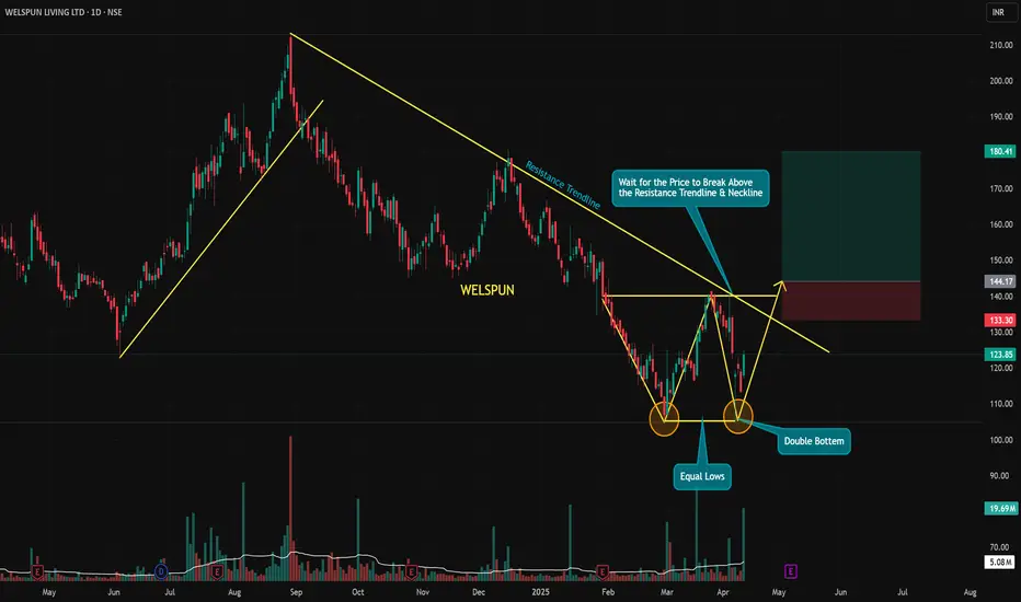 WELSPUN is printing a strong bullish reversal structure, supported by both horizontal and diagonal resistance levels: