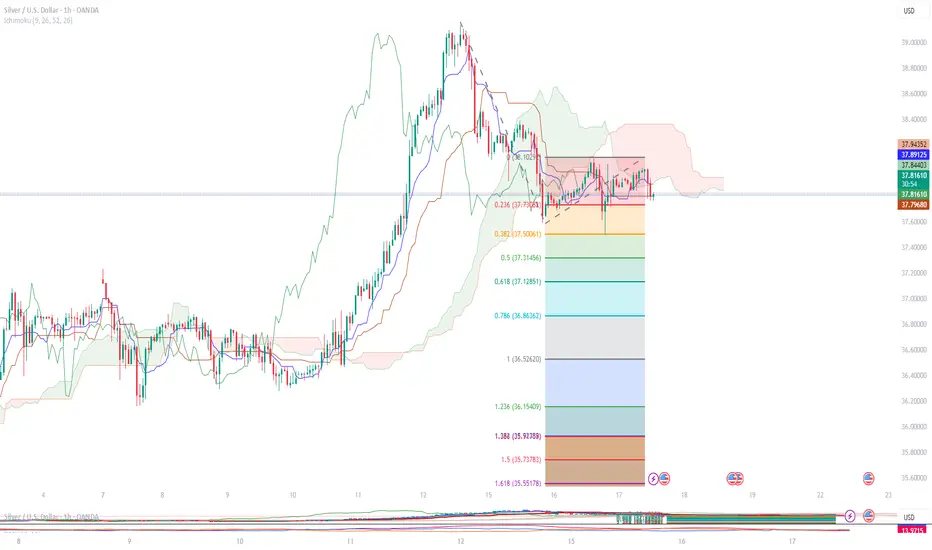 The price is near the 0.236 Fibonacci level (around $37.78) – acting as a weak support.